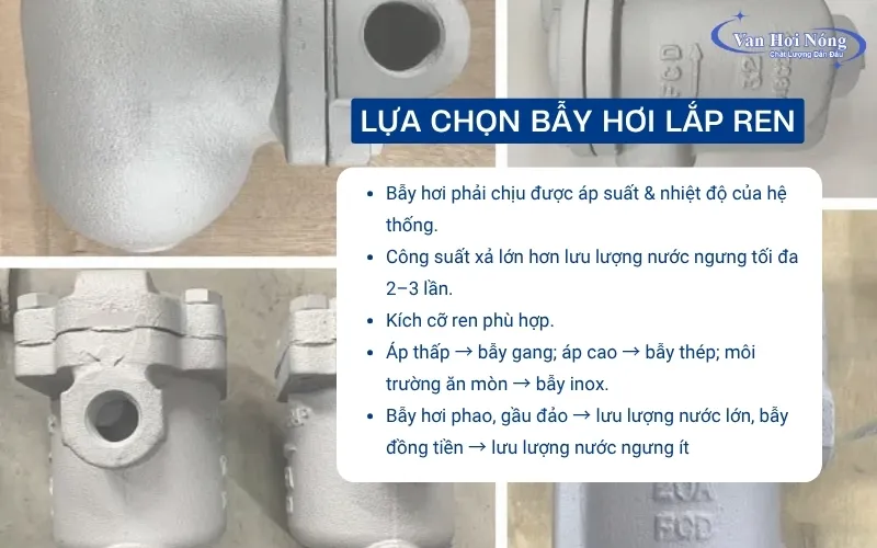 Bẫy hơi lắp ren có nhiều tùy chọn, thế nhưng để chọn được sản phẩm phù hợp với hệ thống, bạn cần cân nhắc các tiêu chí sau: