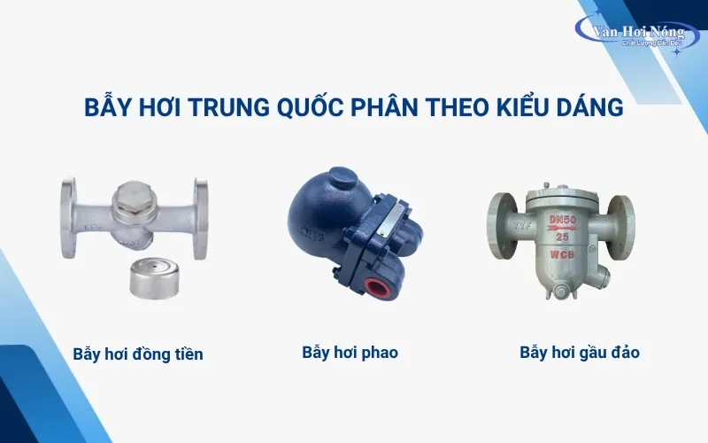 Theo kiểu dáng, bẫy hơi Trung Quốc được phân với ba dòng chính, đó là: