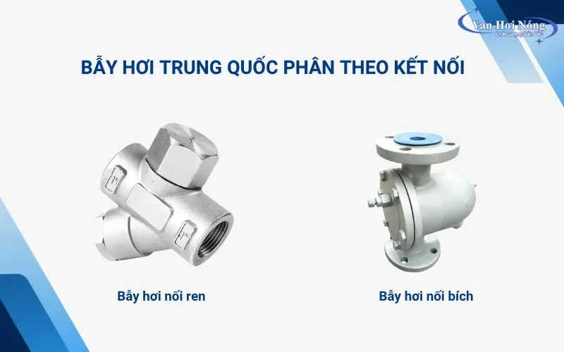 Theo kiểu kết nối, bẫy hơi Trung Quốc được chia làm 2 loại cơ bản. Đó là: