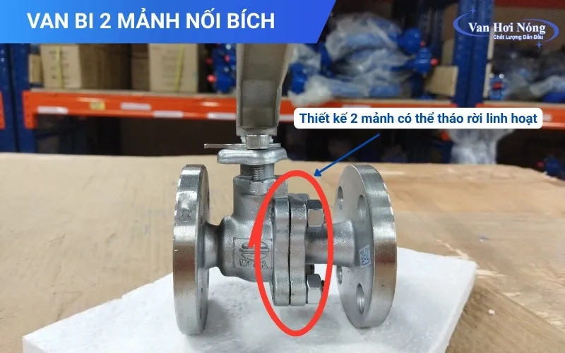 Van bi 2 mảnh mặt bích là loại van bi được thiết kế thông minh với hai nửa thân ghép lại với nhau, cho phép tháo rời từng phần khi cần bảo trì hoặc thay thế gioăng mà không cần phải tháo van ra khỏi đường ống.