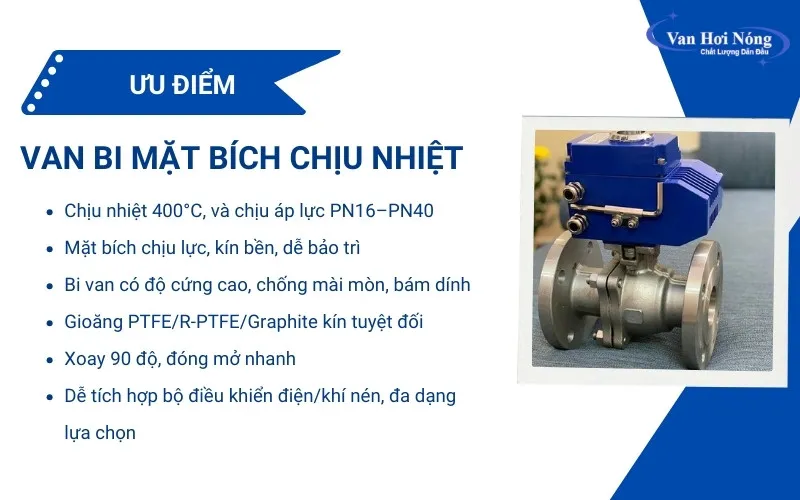 Với hệ thống hơi nóng, khí nén áp lực cao yêu cầu độ kín tuyệt đối, van bi chịu nhiệt mặt bích luôn là sự lựa chọn tối ưu. Vậy sản phẩm này có gì đặc biệt? Vì sao lại được tin dùng đến vậy? Cùng Van Hơi Nóng tìm hiểu chi tiết ưu điểm, ứng dụng và cách phân loại trong bài viết sau.