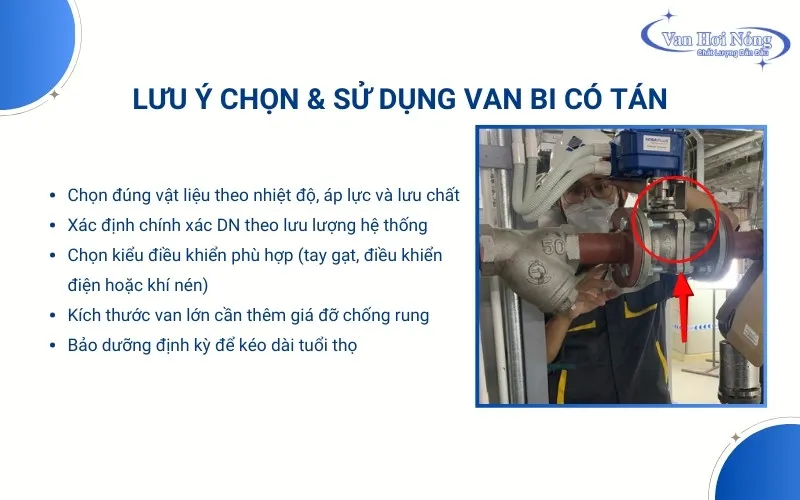 Lưu ý khi chọn mua và sử dụng các loại van bi có tán