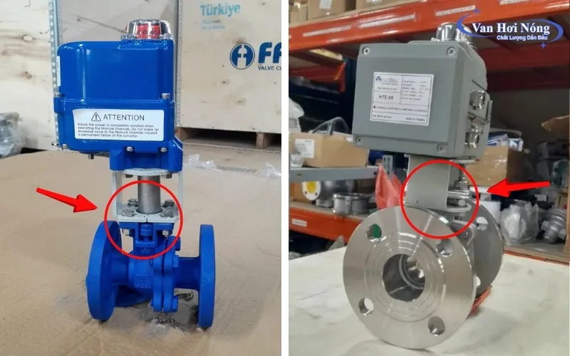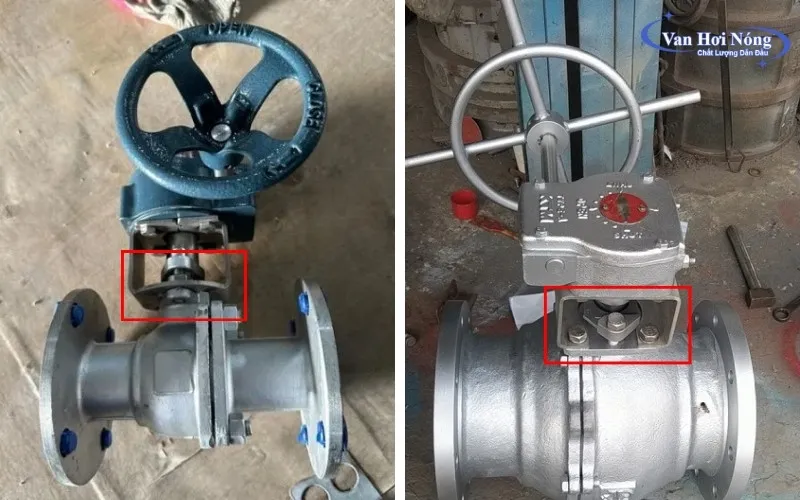 - Phần tán hình vuông nổi trên thân van, dùng làm giá đỡ bộ điều khiển điện, khí nén hoặc tay gạt.
