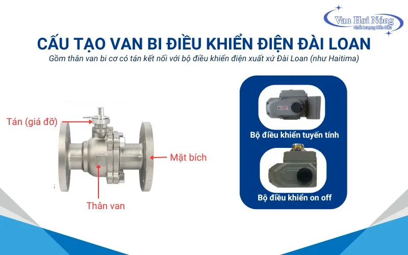 Van bi điều khiển điện Đài Loan được cấu tạo từ hai bộ phận chính đó là: