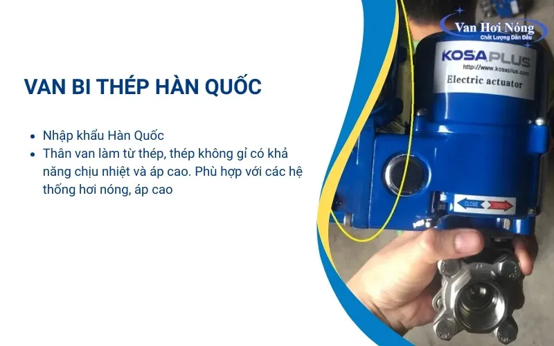 Nếu bạn đang tìm kiếm địa chỉ để mua van bi thép Hàn Quốc chất lượng, giá tốt thì Van Hơi Nóng là địa chỉ đáng cân nhắc. Chúng tôi hiện là nhà phân phối chính hãng van bi thép điều khiển điện và khí nén Kosaplus – Hàn Quốc với đủ kích cỡ (DN15-DN200). Sản phẩm nhập khẩu chính hãng, sẵn kho với số lượng lớn, đi kèm bộ chứng từ CO, CQ đầy đủ.