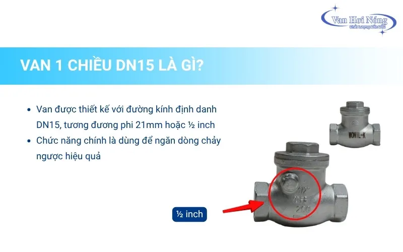 Van 1 chiều DN15, hay còn gọi là van một chiều ½ inch, là thiết bị nhỏ gọn nhưng đóng vai trò cực kỳ quan trọng trong hệ thống đường ống, giúp ngăn chặn dòng chảy ngược và bảo vệ các thiết bị quan trọng như bơm, máy nén hay đồng hồ đo áp suất khỏi hư hỏng.