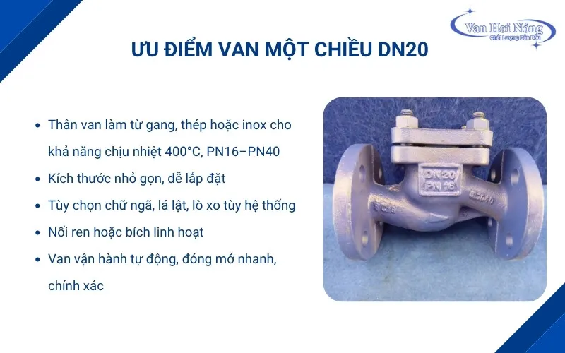 Van một chiều DN20 sở hữu nhiều ưu điểm nổi bật giúp nó trở thành sự lựa chọn lý tưởng cho nhiều hệ thống hơi nóng, dầu nóng, khí nén,…